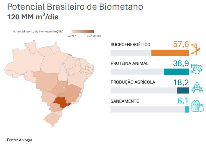 Segundo estudo da ABIOGÁS, o volume de produção de metano de matéria orgânica no Brasil, se capturado, teria o poder energético de substituir 70% do consumo de diesel no país. Note que mais de 20% do consumo de diesel no Brasil é através de diesel importado. Por isso, o biogás ganhou o apelido de “pré-sal caipira”. E ainda é interessante mencionar que o poder energético do metano, 55 MJ/kg, é maior do que do diesel, 46 MJ/kg, proporcionando máquinas de tamanho equivalentes capazes de entregar a mesma potência e torque. Isso facilita a integração em veículos em série, pois sua utilização não requer um motor de tamanho maior do que o original.